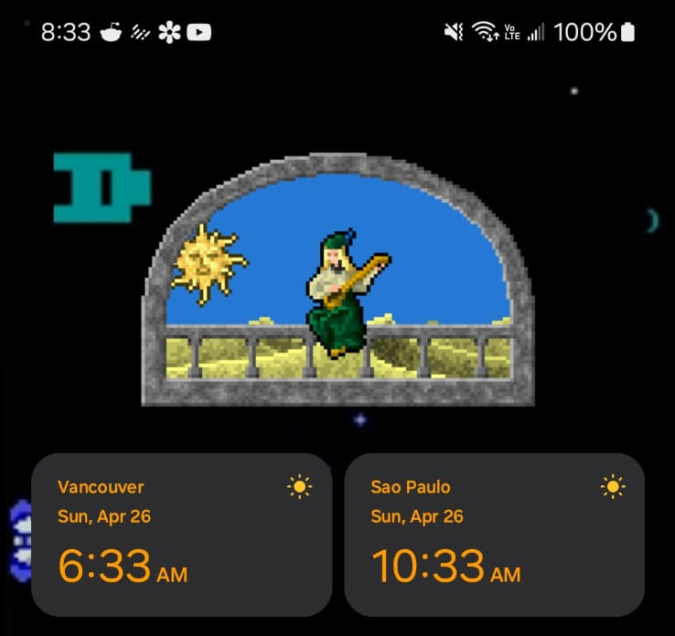 A stylized pixel art clock widget for Android that turns your home screen into a living landscape.